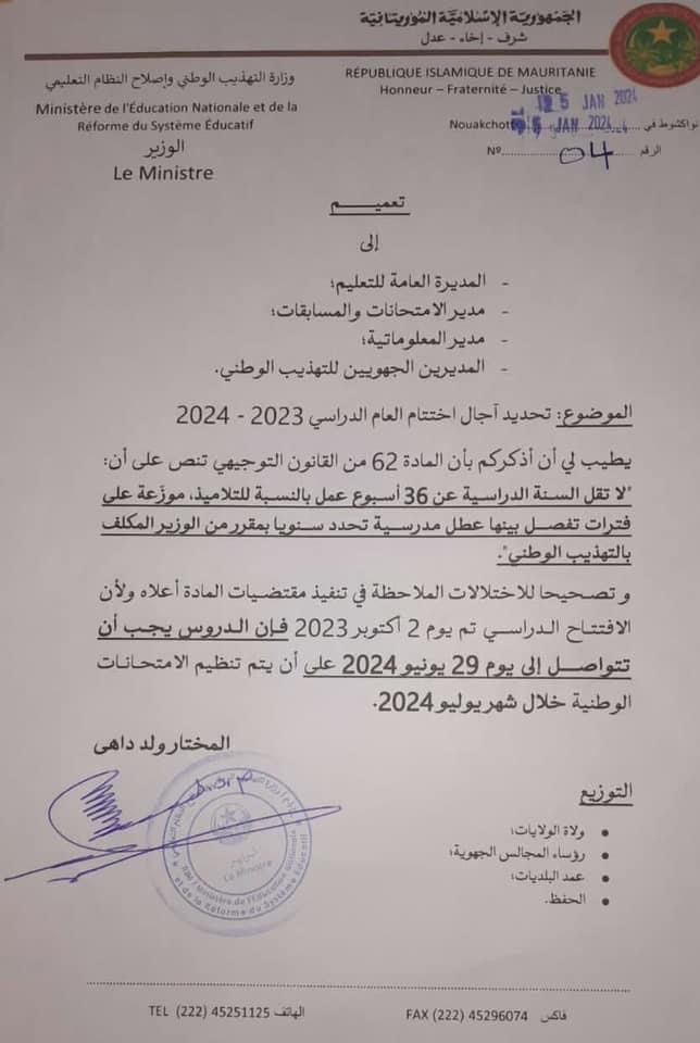 صادق وزير التحول الرقمي والابتكار وعصرنة الإدارة، محمد عبد الله ولد لولي، بالتعاون مع اللجنة الاقتصادية والاجتماعية لغربي آسيا (الإسكوا)، بالإضافة إلى ممثلين من قطاع المكلف بالشؤون الإسلامي على خطة التحول الرقمي المتعلقة بالتعليم الأصلي.