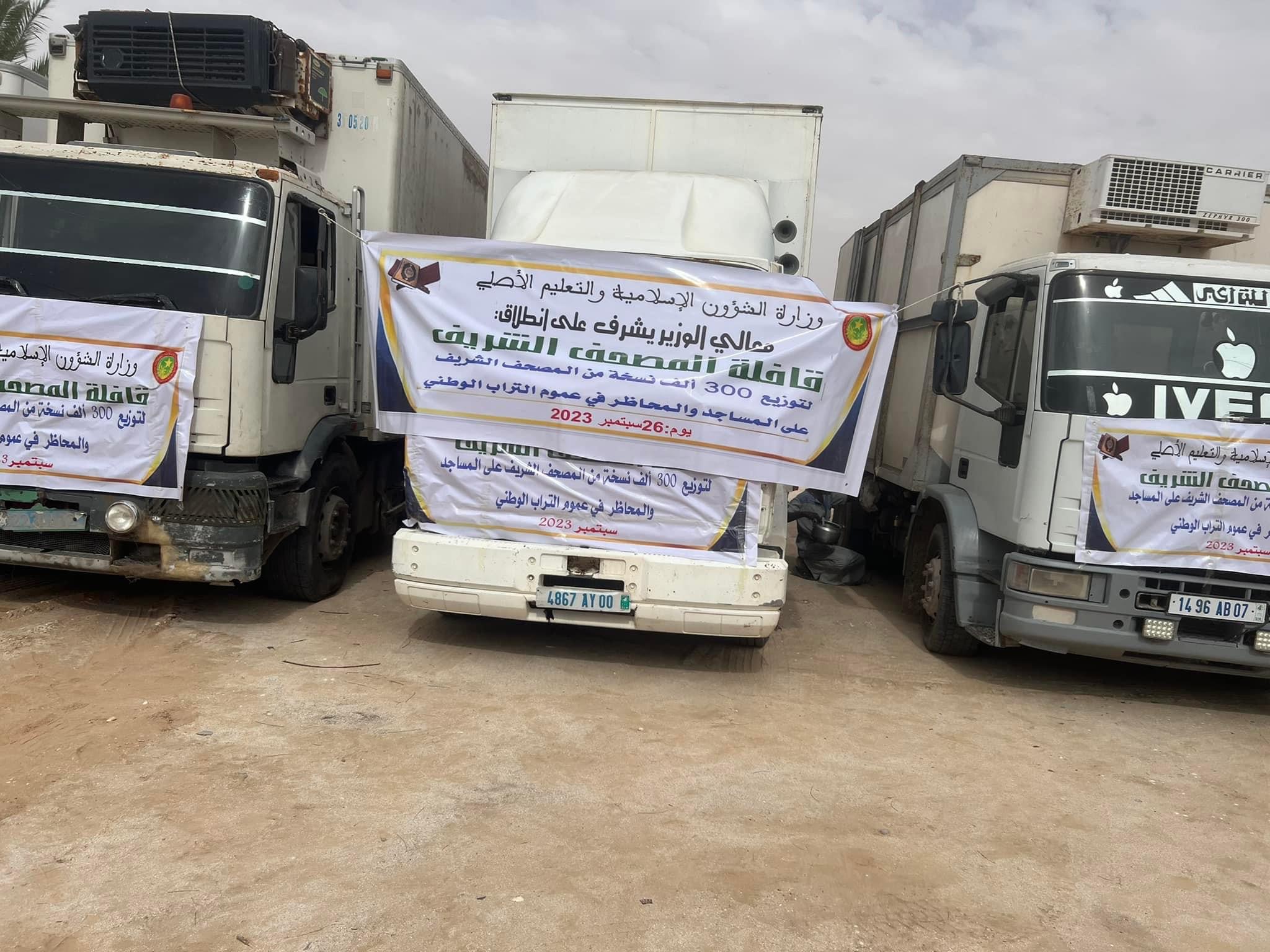 وقالت وزارة الشؤون الإسلامية، إن 200 ألف نسخة من حمولة القافلة موجهة إلى الداخل، فيما خصصت 100 ألف نسخة لولايات نواكشوط.