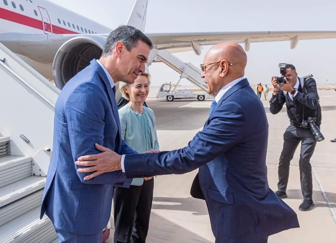 استقبل رئيس الجمهورية السيد محمد ولد الشيخ الغزواني، صباح اليوم بمطار نواكشوط الدولي أم التونسي، معالي رئيس الوزراء الإسباني السيد بيدرو سانشيز، والسيدة أورسولا فون دير لاين، رئيسة المفوضية الأوروبية.