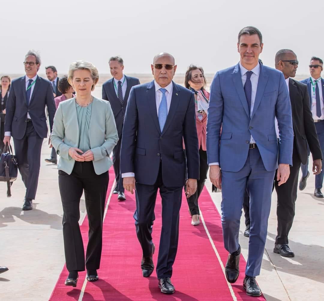 وقد وصل كل من رئيس الوزراء الإسباني، ورئيسة المفوضية الأوروبية صباح اليوم إلى نواكشوط في زيارة لبلادنا تدوم يوما واحدا، تهدف إلى إنشاء إطار عمل للتعاون الثنائي في مختلف المجالات وخاصة مكافحة الهجرة.
