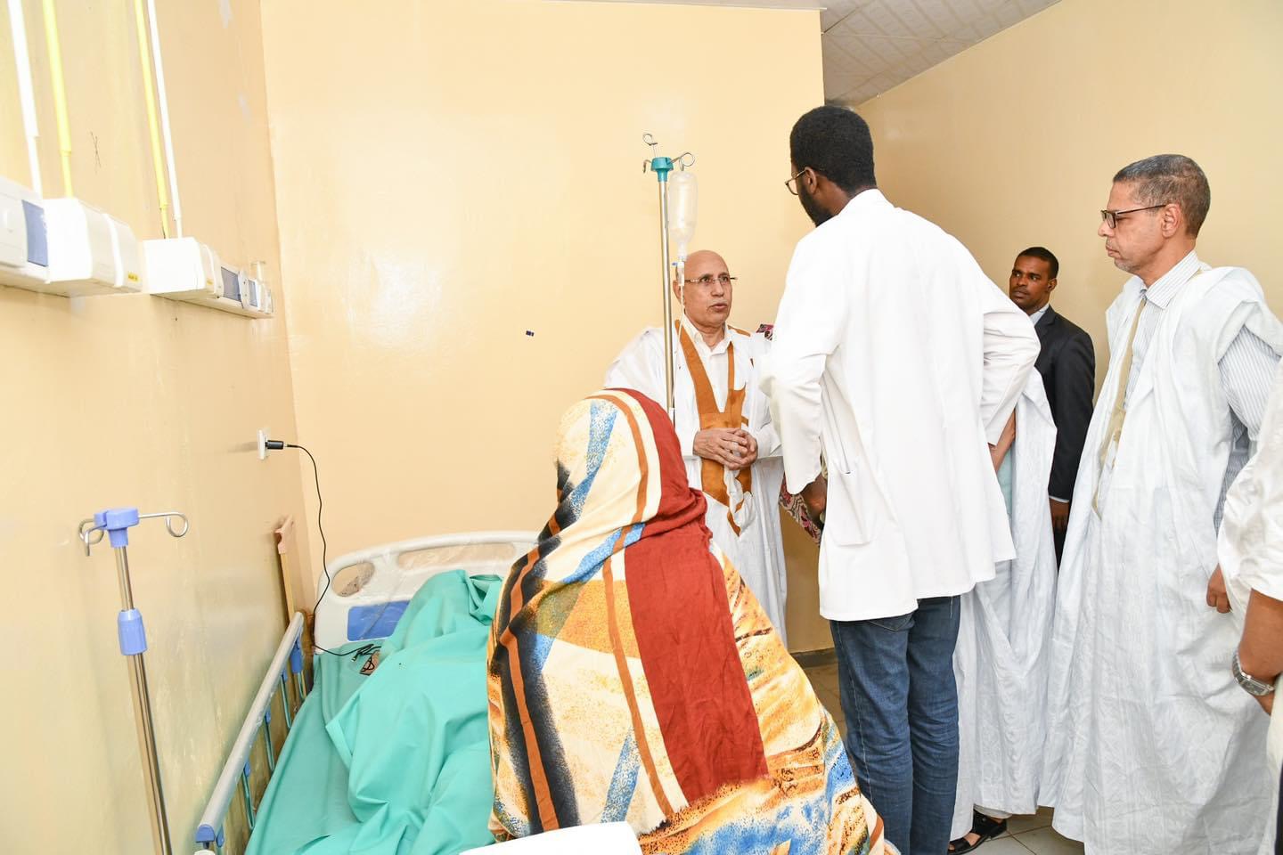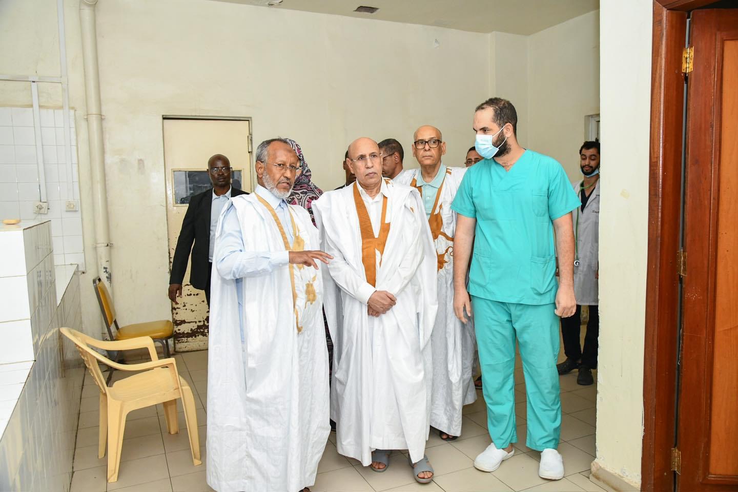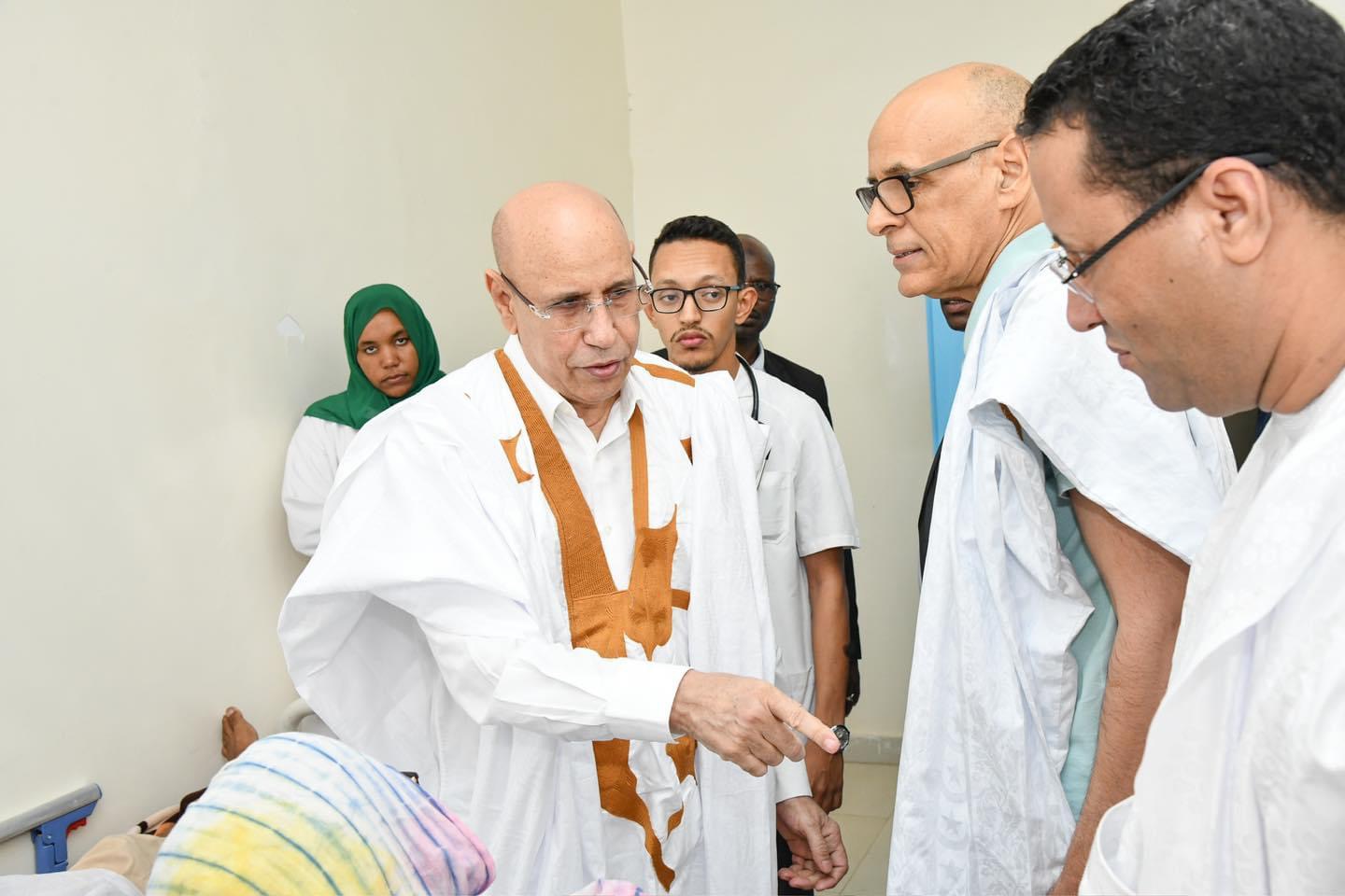 وكان فخامة رئيس الجمهورية خلال تجوله في أجنحة المستشفيين، مرفوقا بمعالي الوزير المكلف بالديوان السيد المختار ولد أجاي، ومعالي وزيرة الصحة السيدة الناها بنت حمدي مكناس، والمدير العام لتشريفات الدولة السيد الحسن ولد أحمد