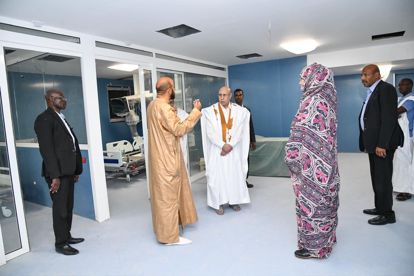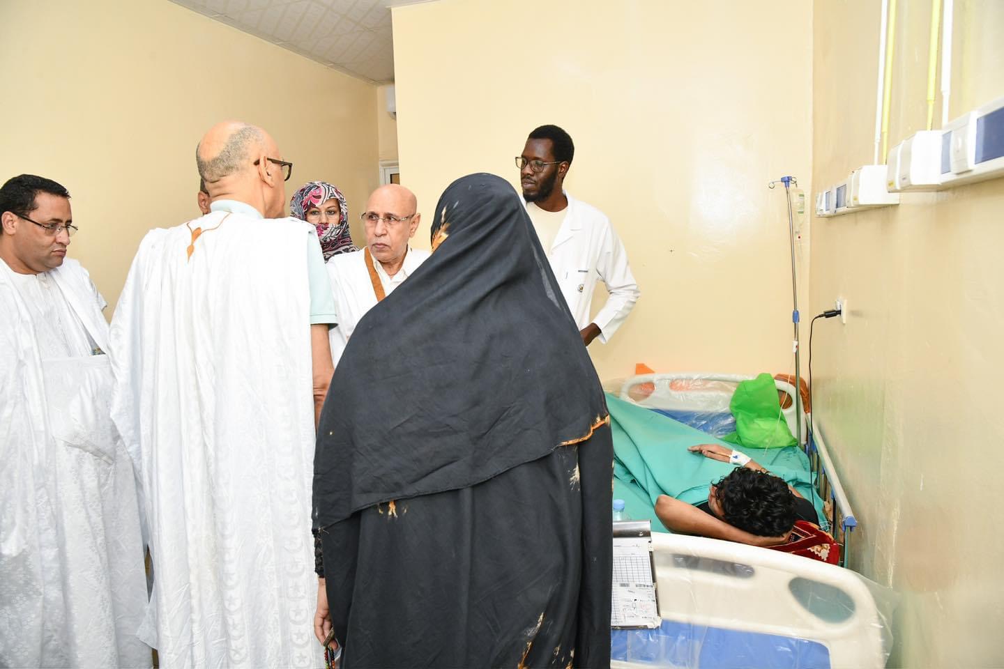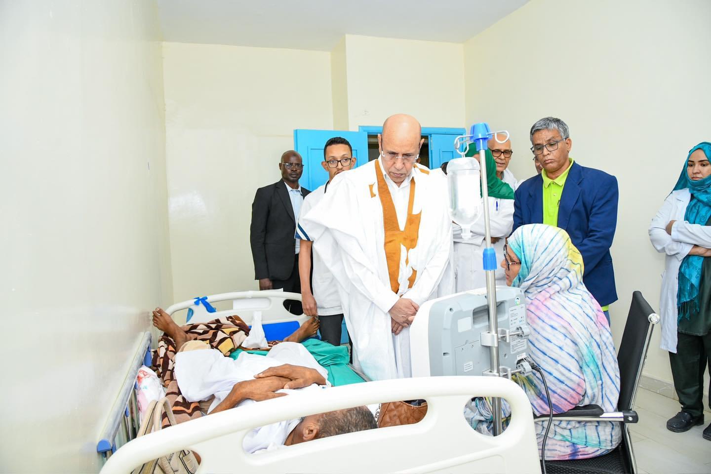 وكان فخامة رئيس الجمهورية خلال تجوله في أجنحة المستشفيين، مرفوقا بمعالي الوزير المكلف بالديوان السيد المختار ولد أجاي، ومعالي وزيرة الصحة السيدة الناها بنت حمدي مكناس، والمدير العام لتشريفات الدولة السيد الحسن ولد أحمد